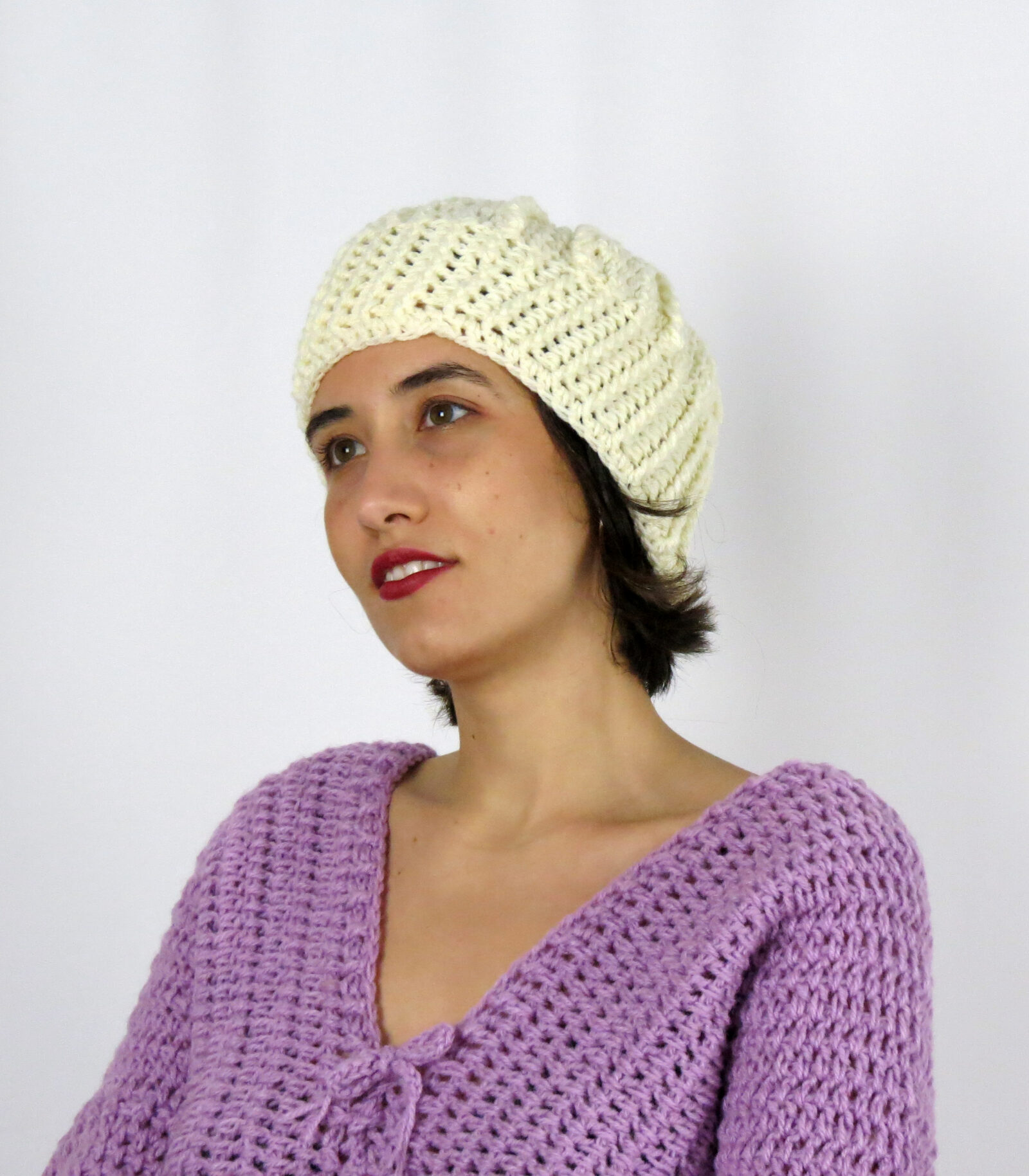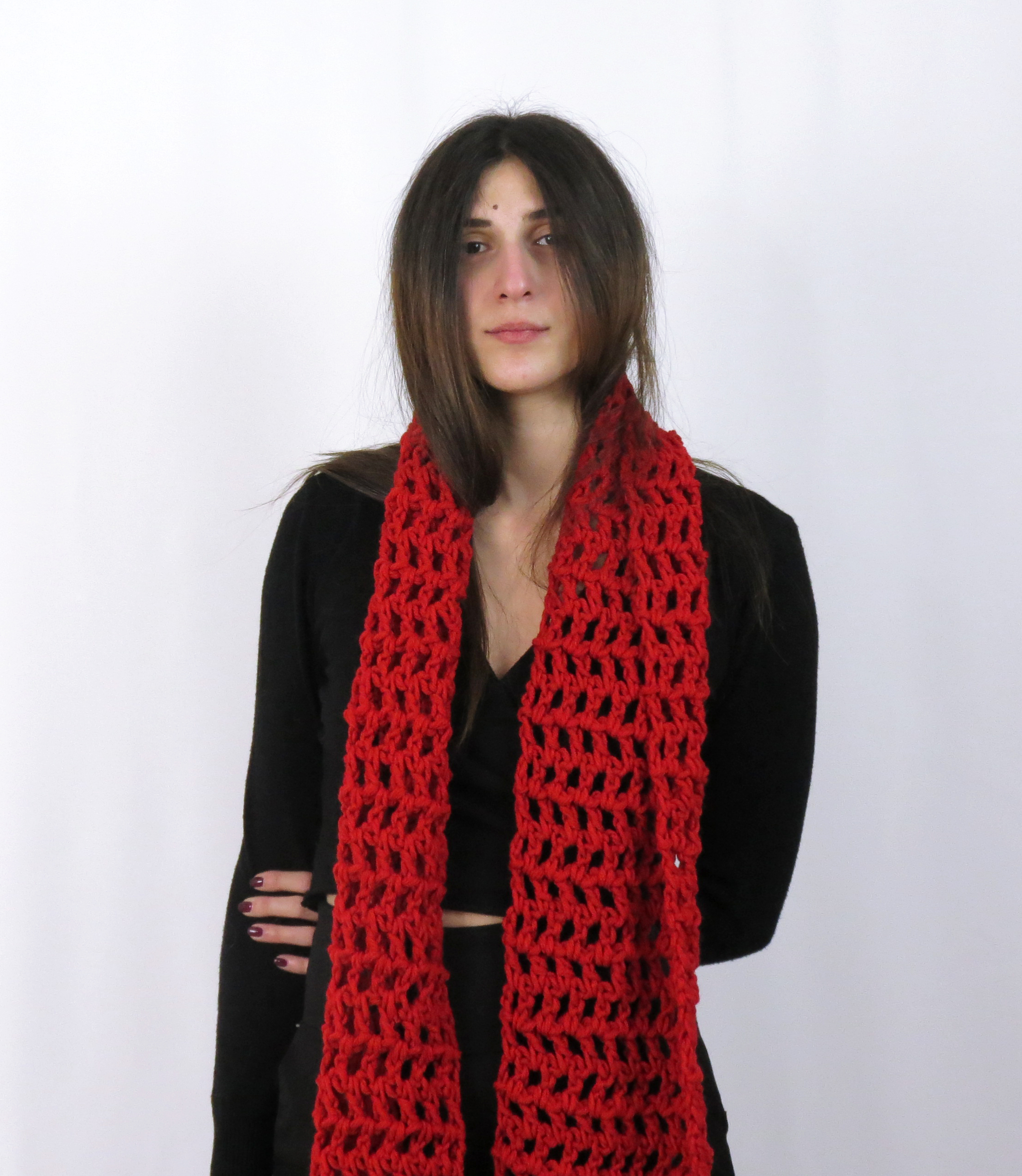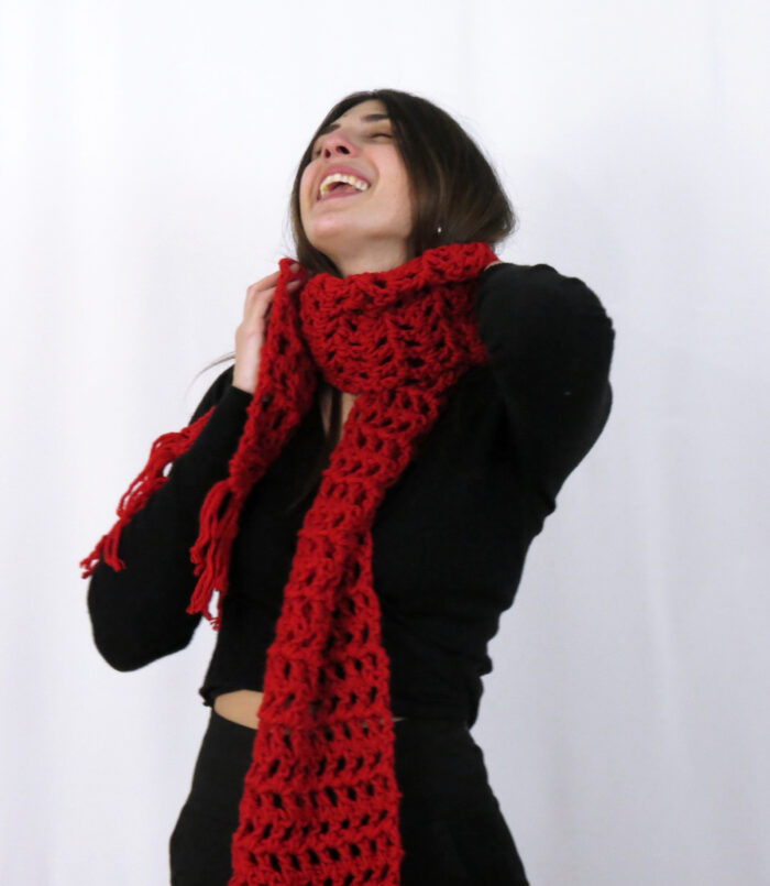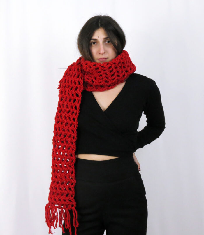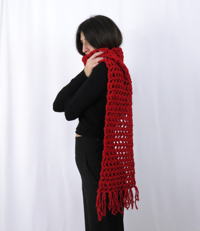 Πλεγμένο με βελονάκι. Νήμα ζεστό και απαλό. Τελειώματα με κρόσια.