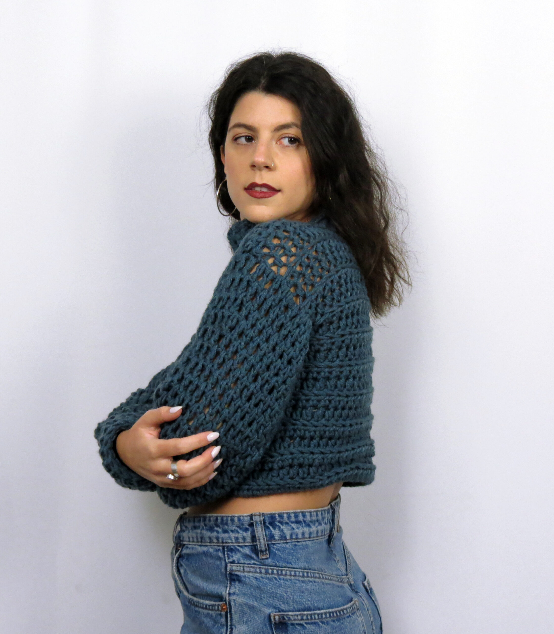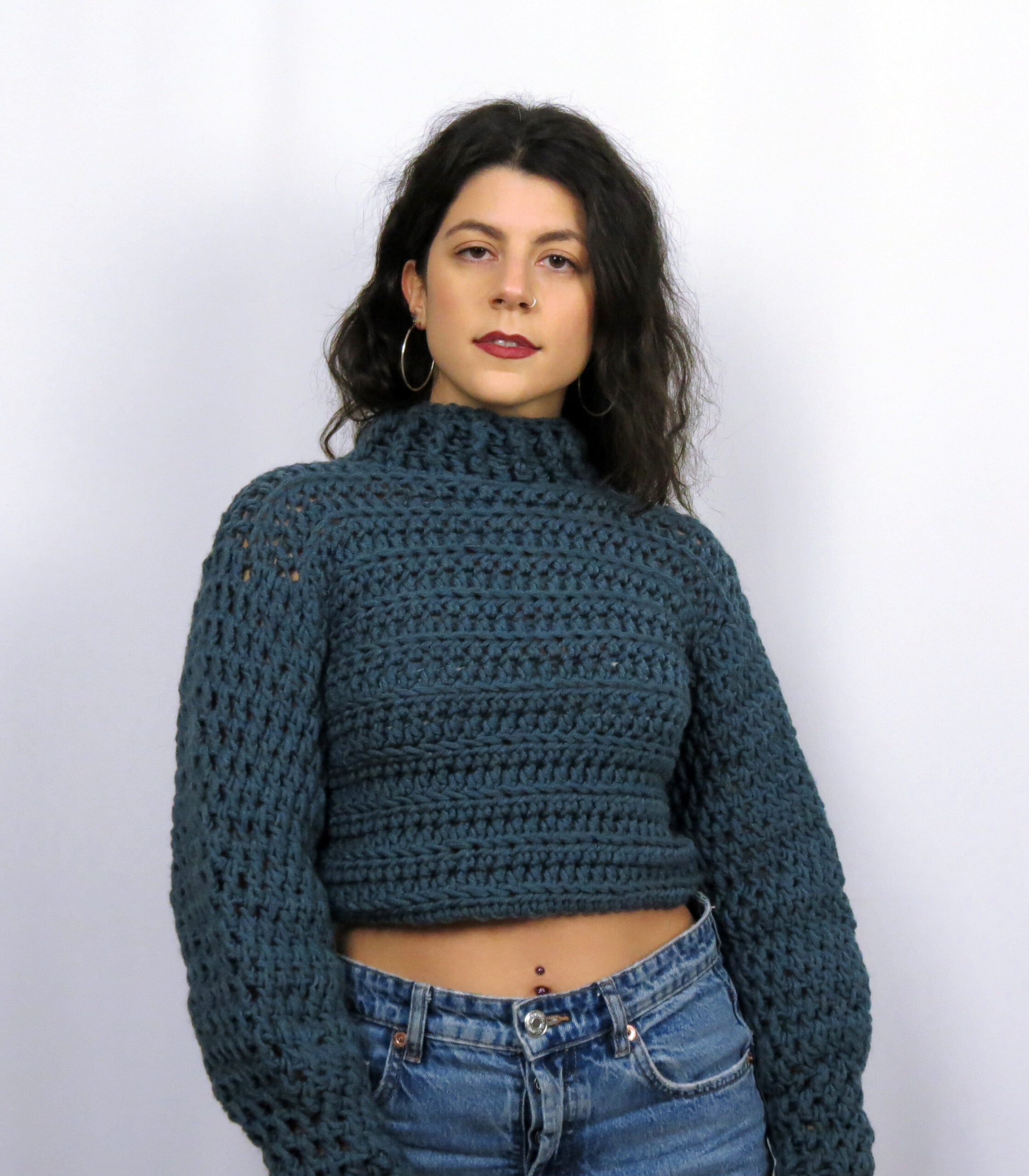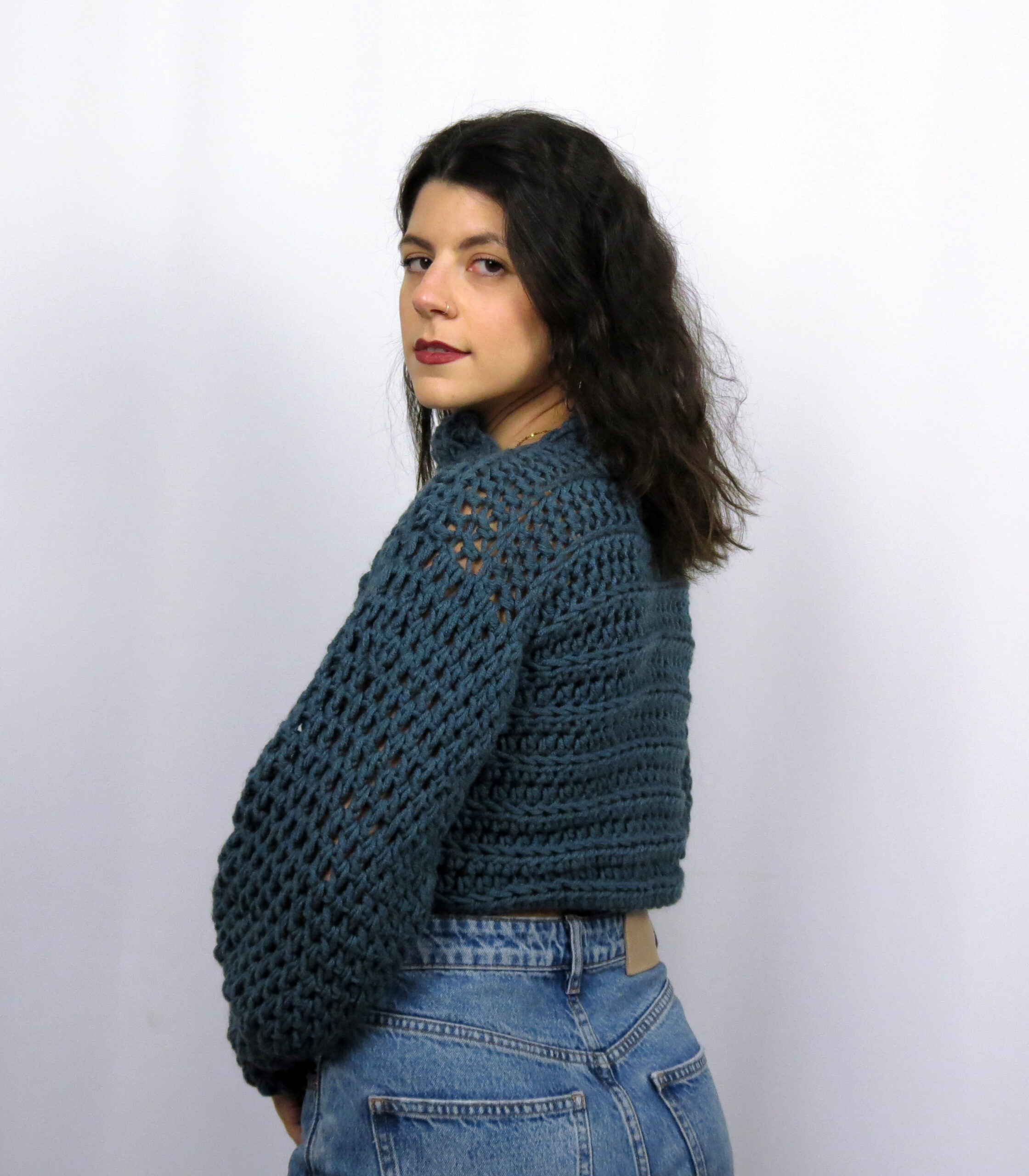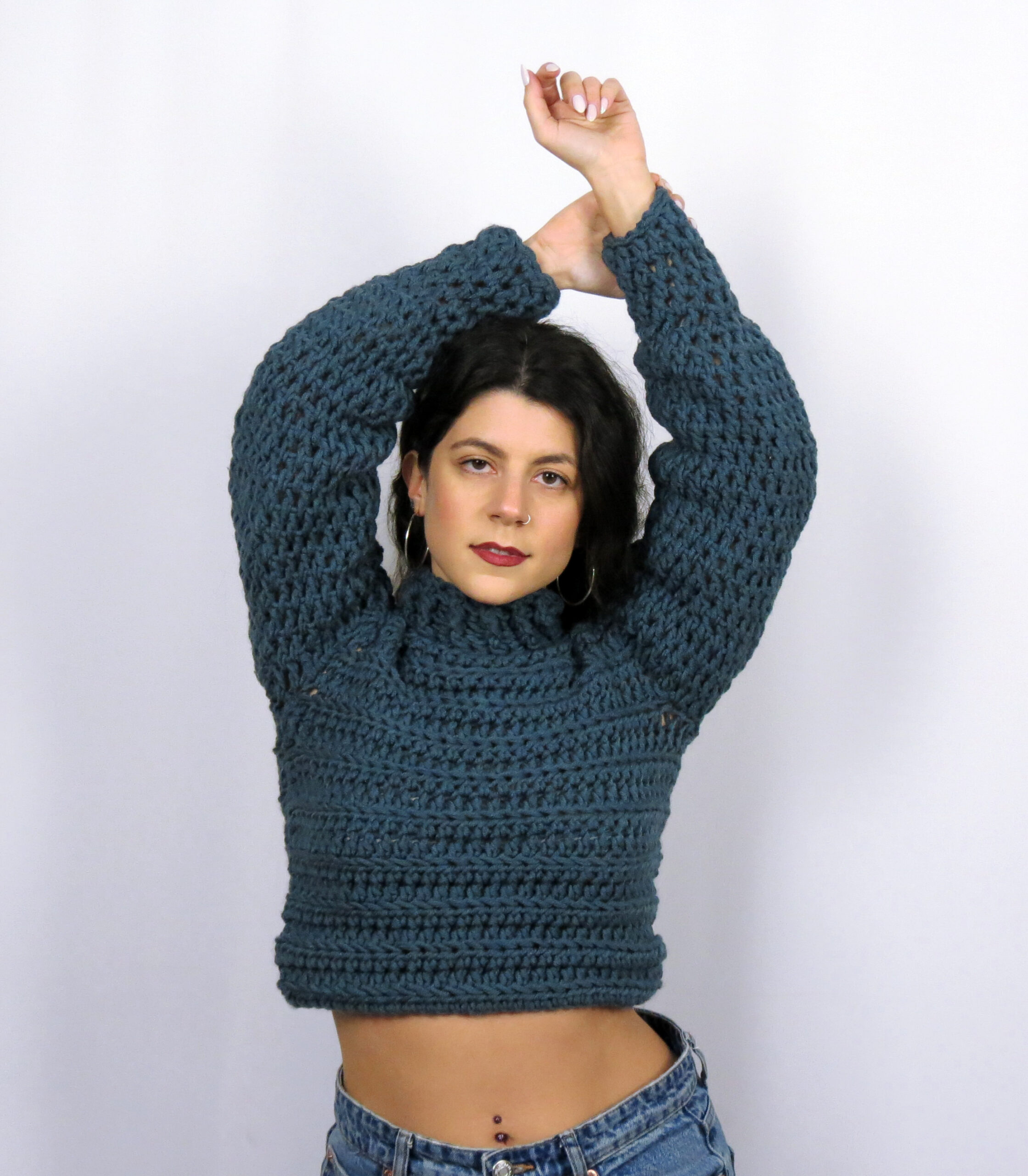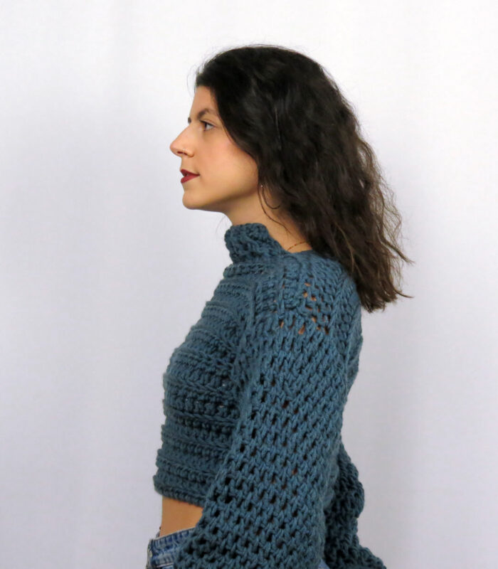 Πλεγμένο με βελονάκι. Κοντή γραμμή. Ψηλός λαιμός. Ιδανικό για χειμώνα.